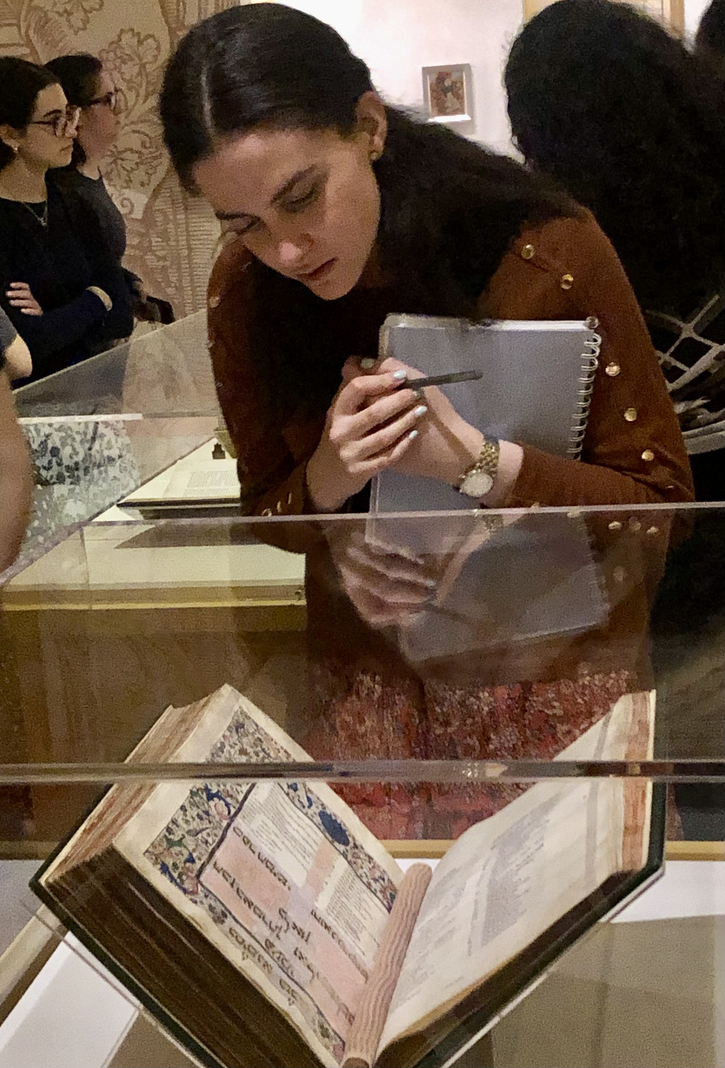 In early September, students participated in guided tours of the exhibit, "The Golden Path: Maimonides Across Eight Centuries," at the YU Museum. The exhibit explores Maimonides' life and impact across centuries, continents, and cultures through rare manuscripts and books. Highlights of the tour included seeing manuscripts in Maimonides’ own handwriting, a carved 11th-century door to the Torah ark from Cairo’s Ben Ezra Synagogue and beautifully illuminated medieval manuscripts.